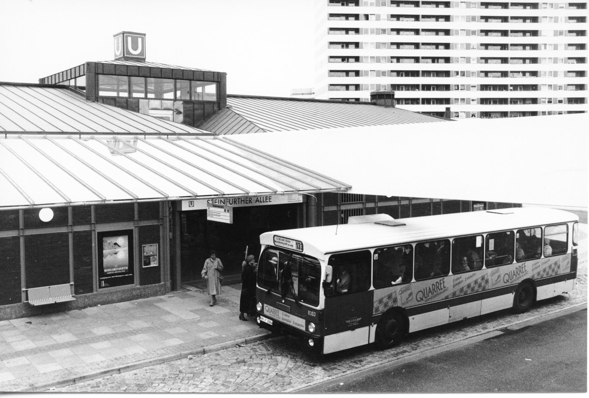Außensicht auf die Haltestelle Steinfurter Alle kurz nach der Eröffnung 1990.
